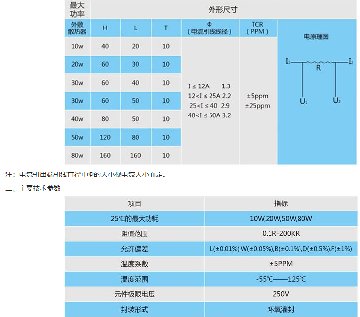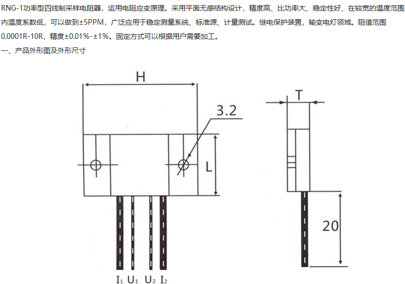 產品名稱: RNG-1功率型四線制高穩定、高精密金屬箔采樣電阻器