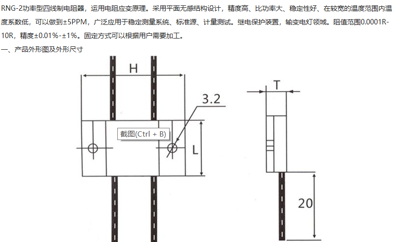 產品名稱: RNG-2功率型四線制高穩定、高精密金屬箔采樣電阻器