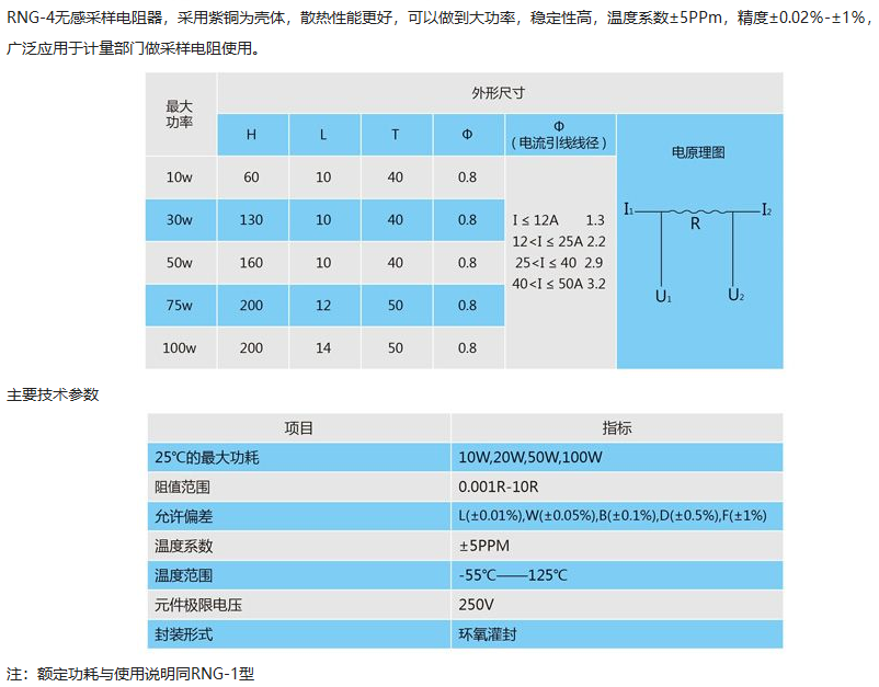 - RNG-4功率型四線制高穩定、高精密金屬箔采樣電阻器