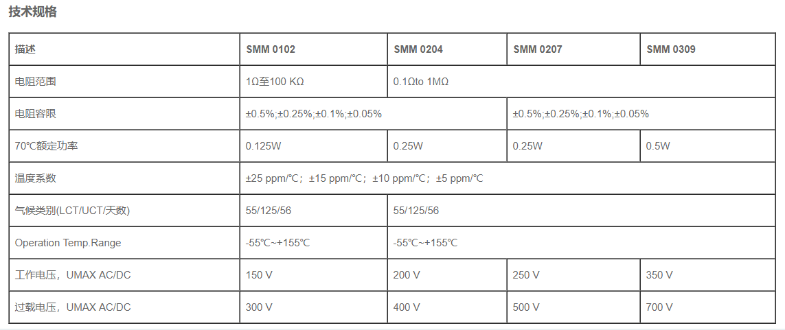 - 阻值范圍: 1Ω~100KΩ 0.1Ω~1MΩ