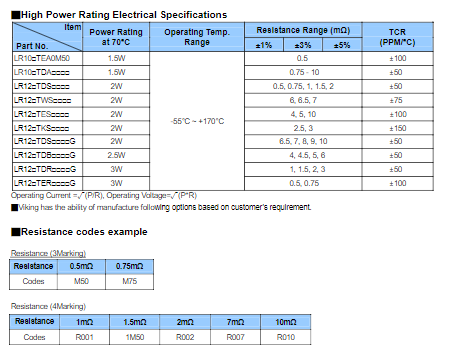 - 阻值范圍: 0.5mΩ~15mΩ