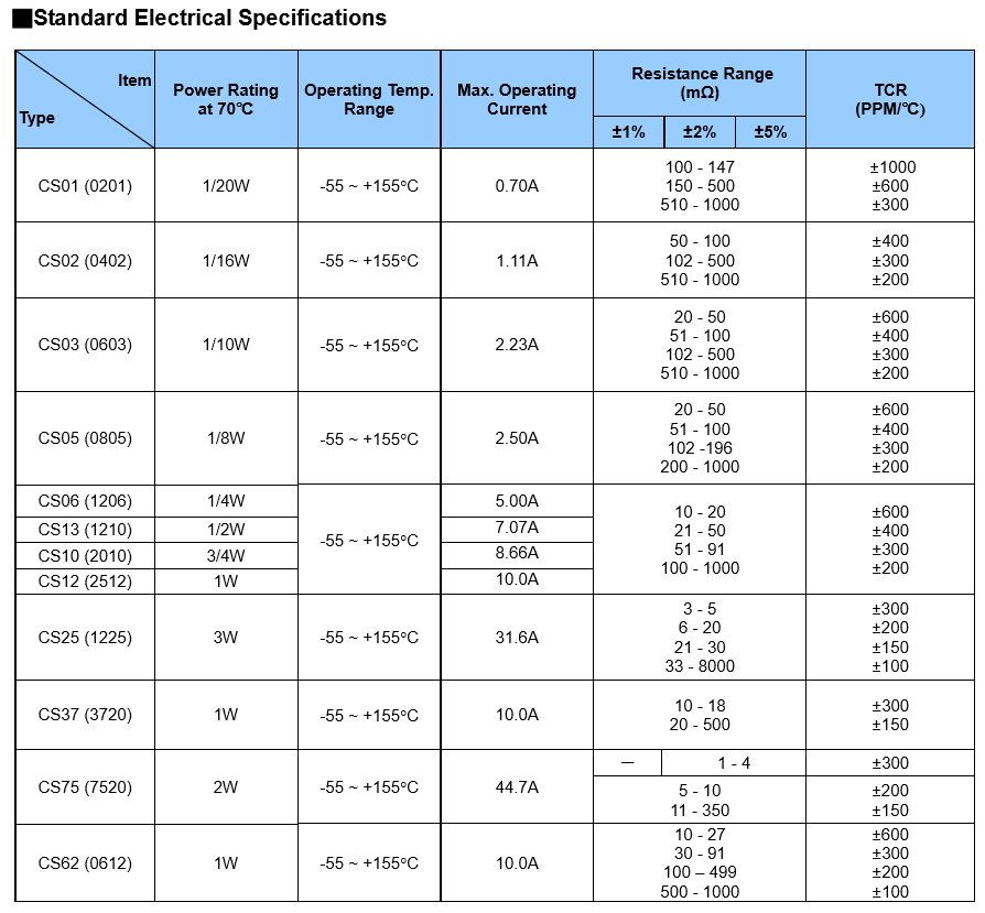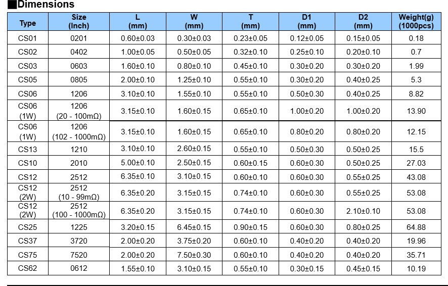 - 功率、封裝: 1.5W 3/4W 2W 1W 1/2W 1/4W 1/5W 1/8W 0201/0402/0603 0805/1206/1210 2010/2512/1225 3720/7520